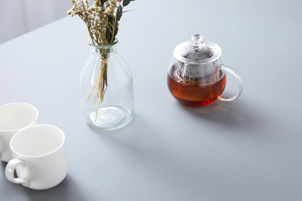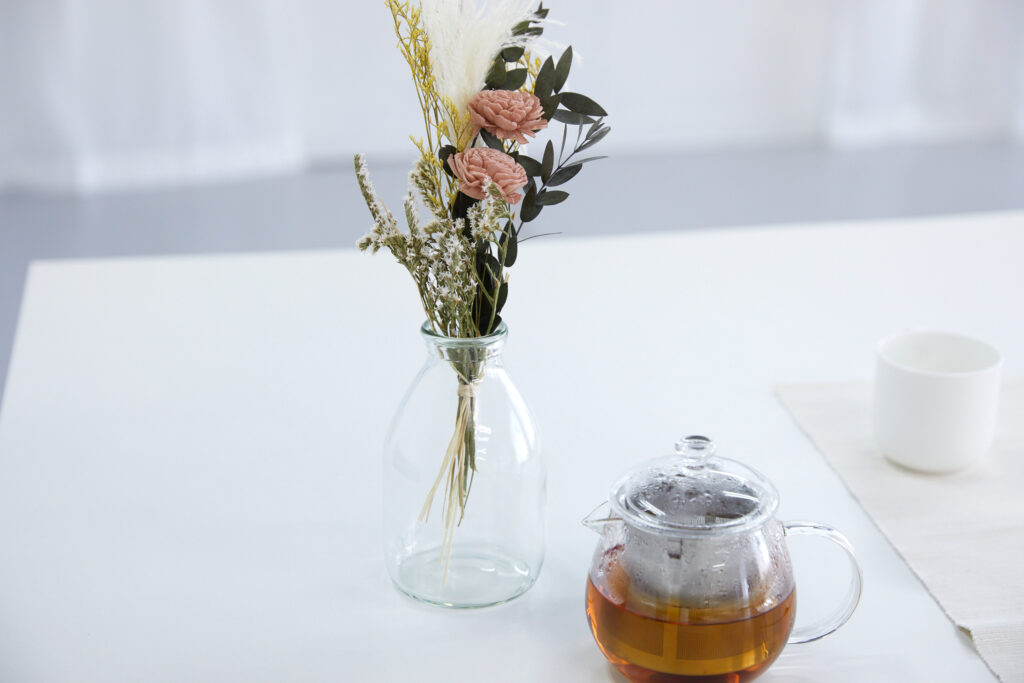 木目フローリングと小道具を活かした平置き撮影やテーブルトップ撮影。